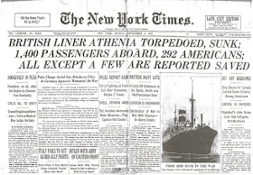 Although it was over two years before America did join the war, the sinking of the Athenia is believed to have softened opinion there to allow amendments to American neutrality legislation, allowing arms sales to the French and British.